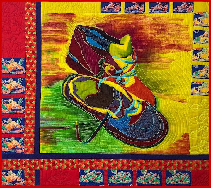 Choose from one of my drawings (like the sneakers) or bring your own drawing to learn to paint with thickened dyes. Your subjects could be flowers, landscapes, animals, people, cartoon characters, or anything you would like. This small welcoming class will be held in my studio and you will leave with a painted top that can be quilted afterwards.
